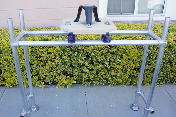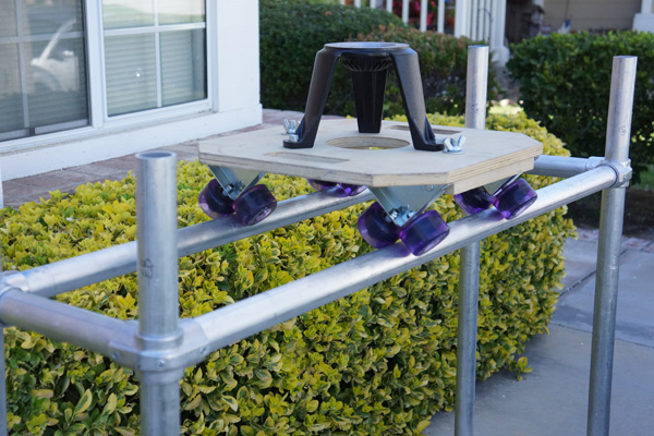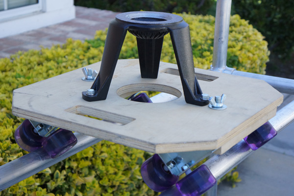 We can mount the wheel bases to larger boards for a simple tripod dolly...just